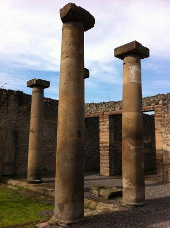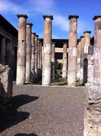 En algunas de las viviendas visitables, nos encontramos con majestuosas columnatas, realmente las Domus Pompeianas de los habitantes mas acaudalados, debían ser construcciones impresionantes, coloridas y lujosas como hemos podido ver sólamente en películas. Algunas incluso ocupaban una manzana entera, como la Casa del Fauno, famosa por su fuente presidida por un pequeño Fauno de bronce, el original se conserva en el Museo de Nápoles, pero en la casa podemos ver hoy una réplica.