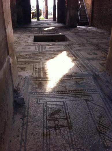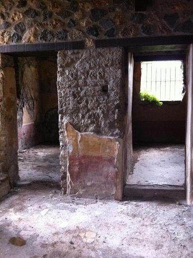 Taverna di Vetutius Placidus: aquí podemos ver una típica cantina, eran sitios sociales, los bares de hoy en día, donde se reunían a charlar los ciudadanos. En lo que parece una barra vemos unos orificios, que son las bocas de unas grandes anforas ocultas, yo creí que en las ánforas se guardaría bebida, pero parece ser que guardaban principalmente caldos y comidas.
