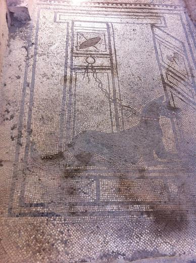 En la entrada de las casas tened cuidado, pues nos podemos encontrar con estos perros en mosaico, CAVE CANEM, "cuidado con el perro".