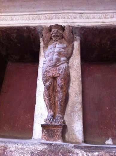 Detalle de uno de los Atlantes de terracota que decoran el tepidarium.