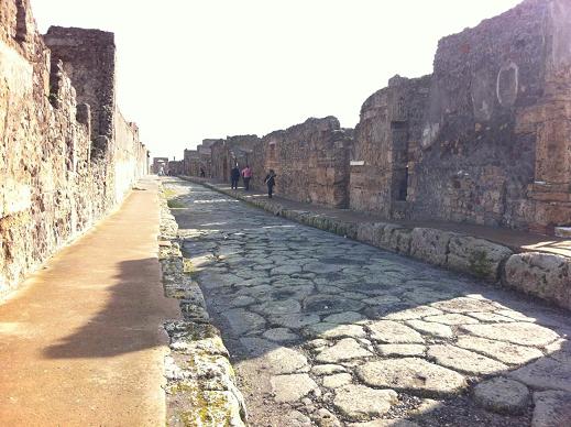 Hoy me doy cuenta que Pompeya fue como una especie de Atlántida durante muchos siglos, se tenían obras de arte e indicios de su existencia y se sabía que las entrañas de la tierra ocultaban un capítulo de la historia, pero no fue hasta mediados del s.XVIII cuando fueron redescubiertas por un español, casualmente. Bien es cierto que antes se había descubierto la ubicación de Ercolano, por un agricultor que hallíó en sus tierras los restos del antiguo teatro. Las ruinas de Pompeya, no están tan ruinas como nos imaginamos, algunas de las casas que caminando por sus empedradas calles puedes ver, podría haber apostado a que habían sido construídas en los últimos 20 años, pero como podéis suponer, hubiera perdido la apuesta. Esas casas, al igual que toda inigualable ciudad romana, fueron construídas entre el siglo I a.c. y el primer siglo de nuestra era.