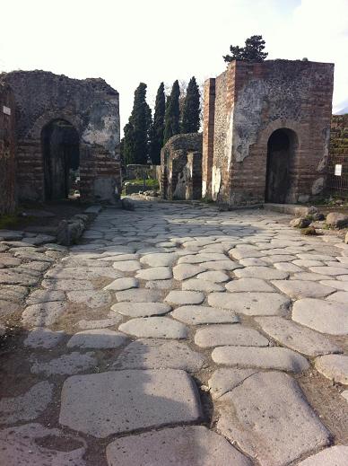 En estas fotos vemos dos de las puertas de entrada a la ciudad, pues Pompeya estaba rodeada por una soberbia muralla con siete puertas de acceso. Algo que me gusta de estas fotos es el empedrado, si esos caminos pudieran contarnos todo lo que por ellos ha pasado...
