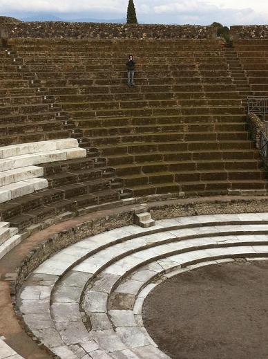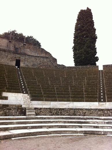 El teatro romano era uno de los ejes de la ciudad, Pompeya tenía dos teatros, el teatro grande y otro más pequeño. El teatro grande podía albergar a hasta 5.000 espectadores distribuídos en tres tipos diferentes de "butacas", con diversos precios a elegir.