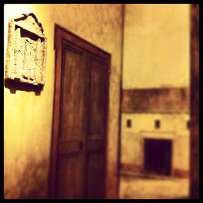 Detalle de una de las casas abandonadas del pueblo de Oreja. Si observáis la foto se distingue una figura en la puerta, pero no es un fantasma ni una pareidolia, es uno de nosotros... :)